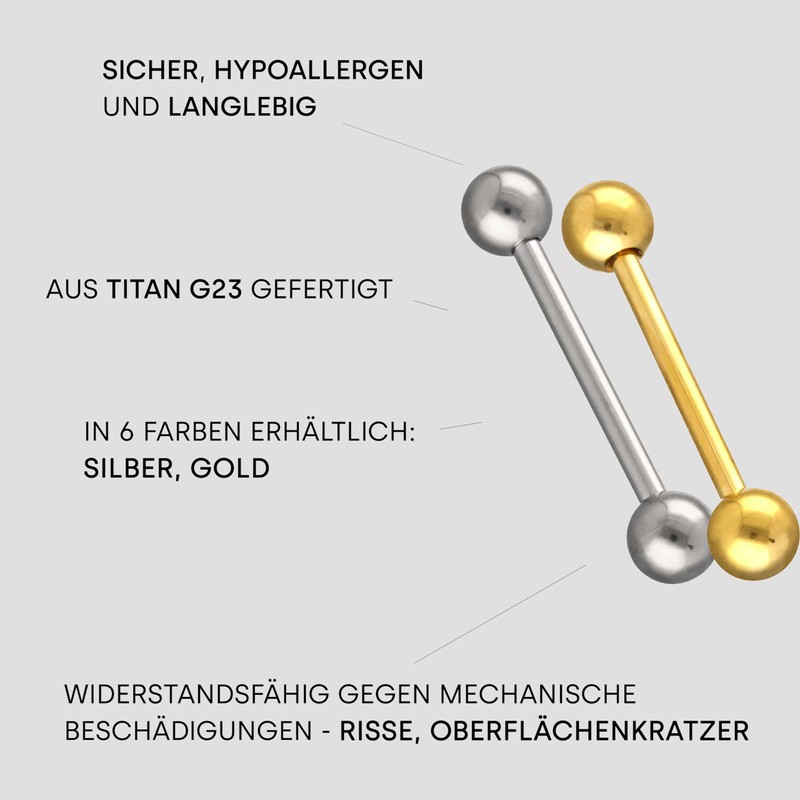 • A barbell shaped tongue piercing - Our barbell piercing is perfect for piercing the tongue or nipples. The great advantage of the tongue piercing is that it is easy to insert.