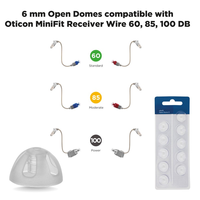 • Replacement 6mm OPEN MINIFIT DOME TIPS for your Oticon hearing aids.