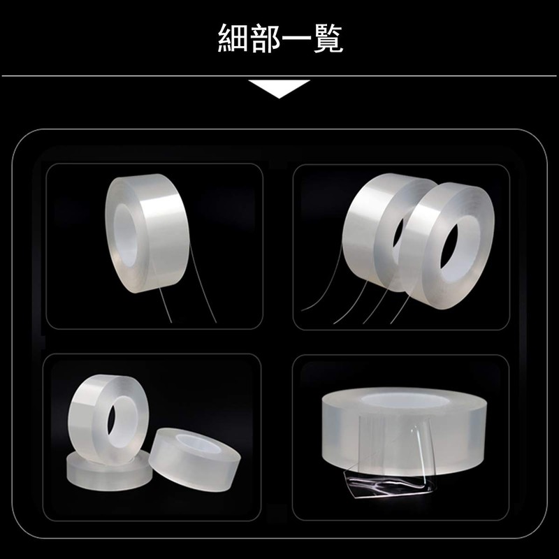 - Product Specifications: Type: Double-sided tape. Material: Acrylic Rubber Color: Clear Length:1m/3m/5m Width: 3cm / 5cm Thickness: 2mm Applicable locations: For everyday household use, office, dorm, household appliances, "earthquake prevention", securing commercial signs, non-slip carpets, storing small items, securing figurines, etc. Package: 1 x Magic Double Sided Tape