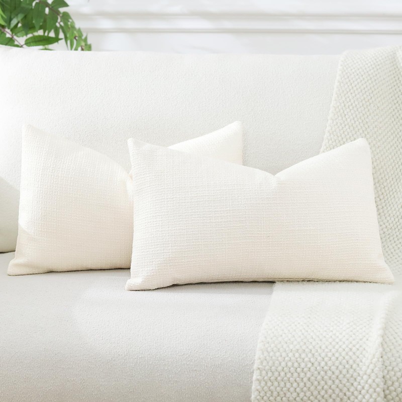 OTOSTAR Pack of 2 Throw Pillow Covers 12x20 Inch Linen Cream Pillowcases Farmhouse Decorative Solid Pillow Covers 30x50 cm Lumbar Cushion Case for Home Decor Sofa Couch Bed (Cream)