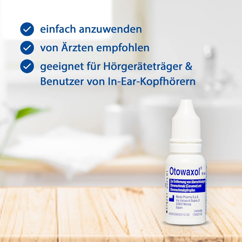 - Also suitable for hearing device wearers: the Otowaxol solution is well suited for keeping the ear canal clean of hearing aid wearers.