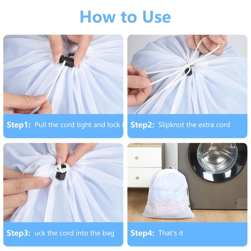 - 【Secure Drawstring Closure】The Laundry Net Bag feature a large opening for easy loading and quick access to clothes. Drawstring closure with a spring lock keeps your personal clothes secure in the bag, preventing your articles from losing in route to washing machine.
