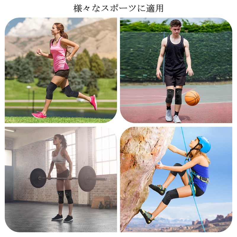 - 【多様な使用】膝サポーターは、ジョギング、バスケットボール、サッカー、野球、バレーボール、登山などの日常アウトドア活動だけでなく、フィットネス、クロスフィット、スキー、スノーボードなどの激しい運動でも使用できます。ひざ当ては薄手なので、階段の上り下りや家事などの日常作業にも快適に着用します。