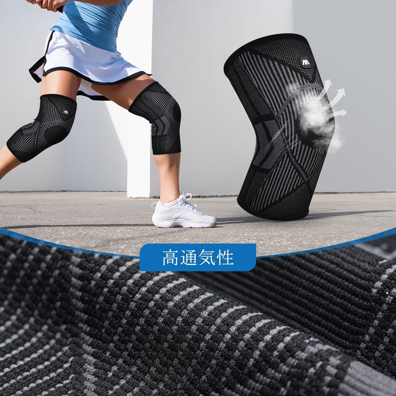 - 【通気性&伸縮性】ひざサポーターは3D立体編み技術を採用しており、通気性と伸縮性に優れています。高い通気性により汗を抑えて心地よい装着感を実現し、高い弾力性により装着時に筋肉の負担なく膝を自由に曲げることができます。