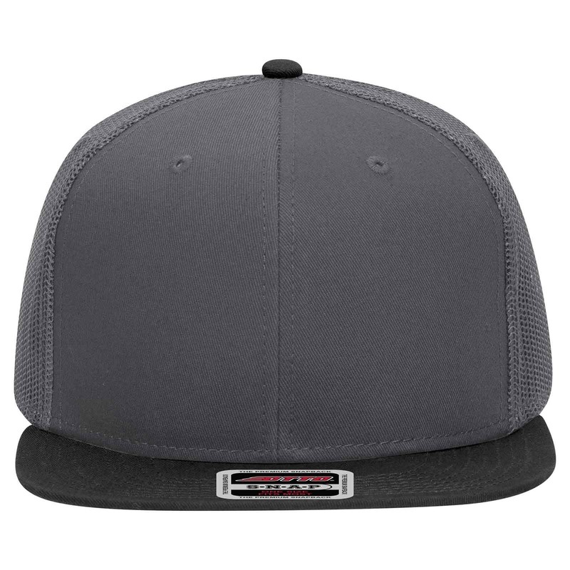 Otto 141-1070 Cap Flat Visor, Cotton Front, 6 Panels, Polyester Mesh Back, Baseball Snapback, black charcoal