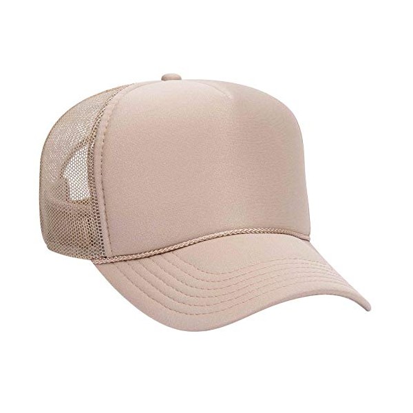 Otto Cap 5 Panel Mid Profile Mesh Back Trucker Hat Polyester Foam Front Khaki