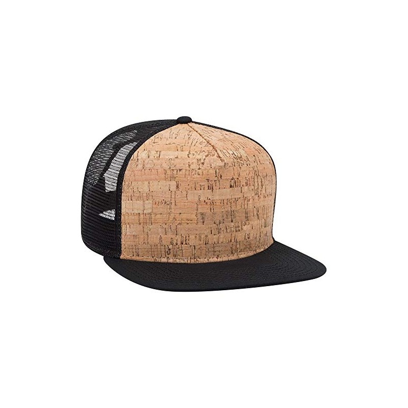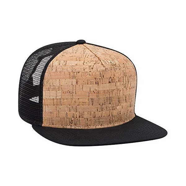 Otto Cork Flat Visor SNAP 5 Panel Mesh Back Trucker Snapback Hat - Char. Gray/Cork/Char. Gray