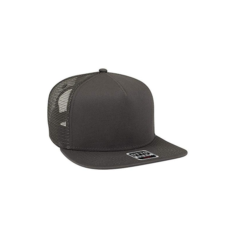 Otto Square Flat Visor SNAP 5 Panel Mesh Back Trucker Snapback Hat - Char. Gray
