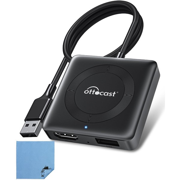 Ottocast Car TV Mate HDMI Multimedia Adapter for Connecting HDMI Output TV Sticks, Screencasts, DVDs, etc. for Wired Apple CarPlay Vehicles with Cleaning Cloth