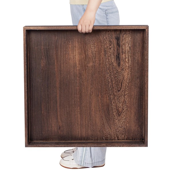 Ottoman Tray for Living Room Wood Serving Tray Large Square 24 Inches Rustic Brown