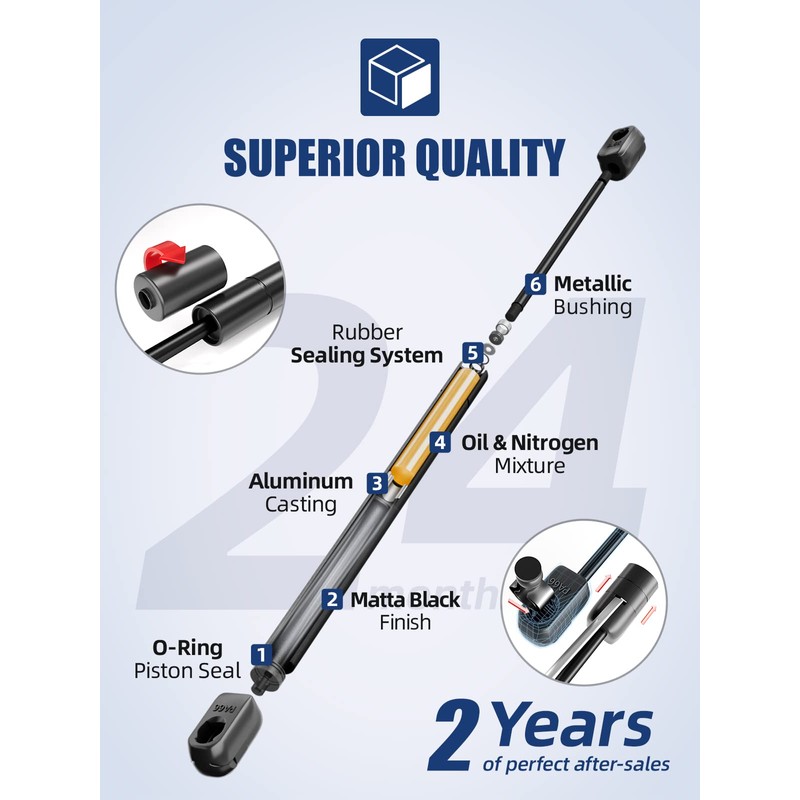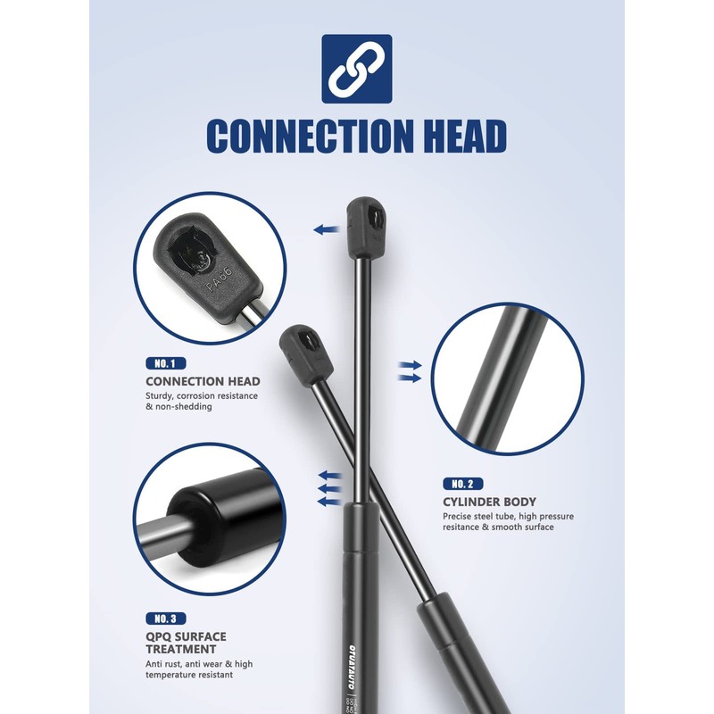 - Advantage: OTUAYAUTO gas springs are designed by German engineer, get many patented technology, meet the TUV NORD industry standards, 180000 times test stop