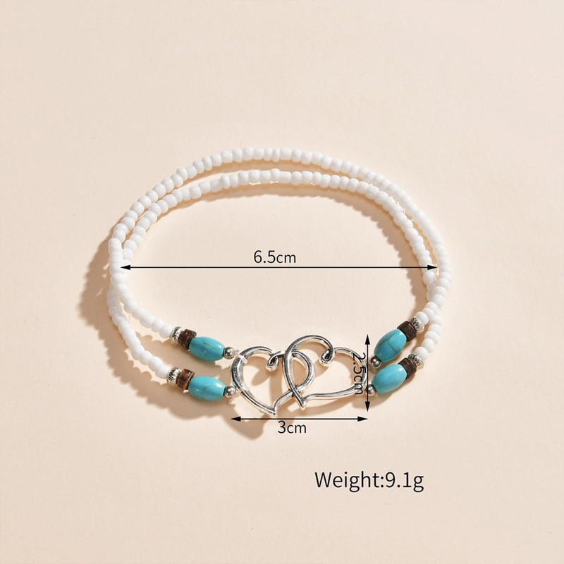 Otxas Beaded Anklets for Women Layered Stretchy Ankle Bracelets for Women Waterproof Cute Boho Beach Anklets for Women Double Heart Foot Jewelry for Women (White)