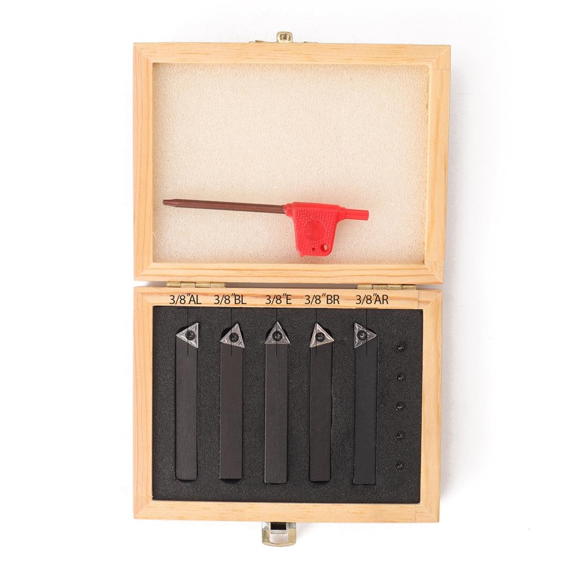 • Includes AL, AR, BL, BR, and E style holders with 3/8" shank for maximum flexibility,comes with 5 premium carbide inserts,complete solution for various turning operations in one convenient set.