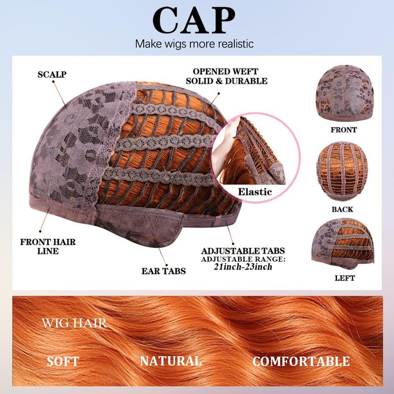 - 【Adjustable Wig Cap】- It use breathable rose net within the network which make you feel comfortable when you wear it.Average Cap Size 22.5 Inches.There are two adjustment straps inside the wig, which can be intertwined to a fixed position to suit different head sizes.
