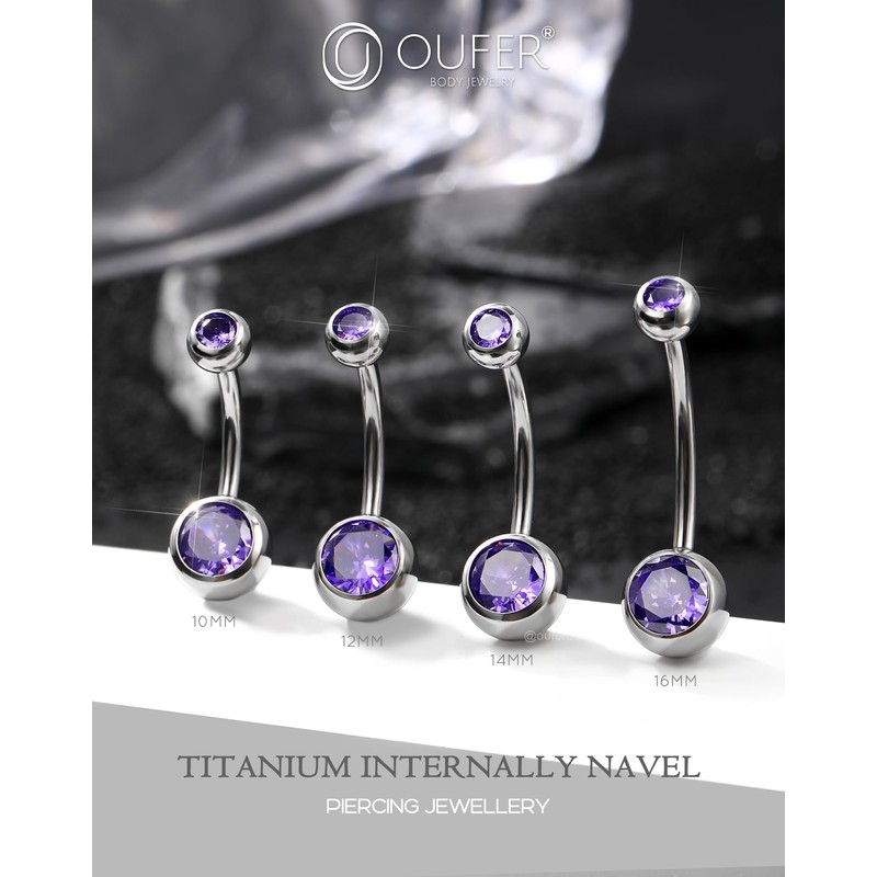 OUFER 14G Titanium Belly Button Piercing 10/12/14/16 mm Purple Belly Button Piercing Jewellery Titanium Belly Button Ring for Women Internal Thread Belly Button Piercing, Titanium, Cubic Zirconia