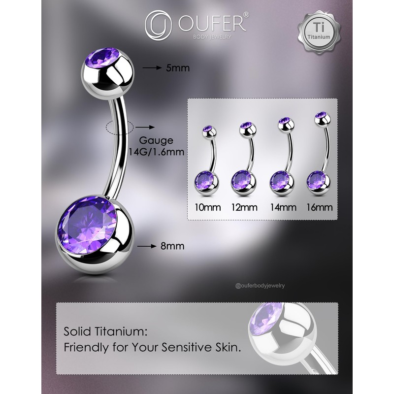 OUFER 14G Titanium Belly Button Piercing 10/12/14/16 mm Purple Belly Button P...