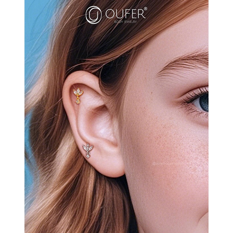 - DESIGN OF HELIX JEWELRY This gold helix piercing is crafted from 316L stainless steel and features three sparkling CZ stones with a CZ dangle designed with a threadless plug-in mechanism for easy wearing