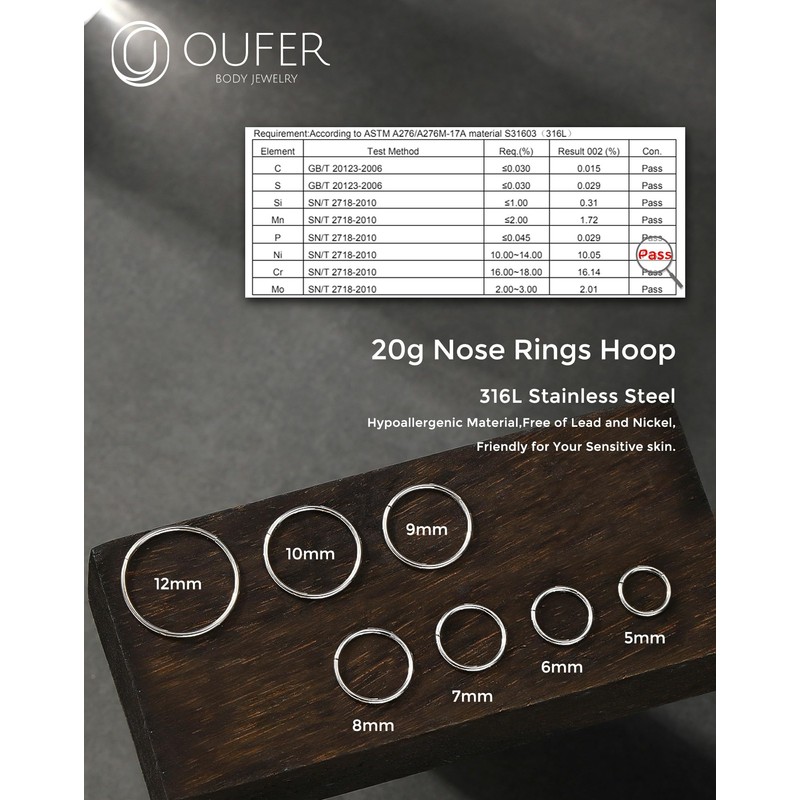 OUFER 20G Nose Ring Surgical Steel 316L Nose Piercing Ring 5/6/7/8/9/10/12 mm Piercing Nose Piercing Nose Piercing Nose Piercing Nose Piercing Nose Piercing Nose Piercing Stud, Stainless Steel, Metal