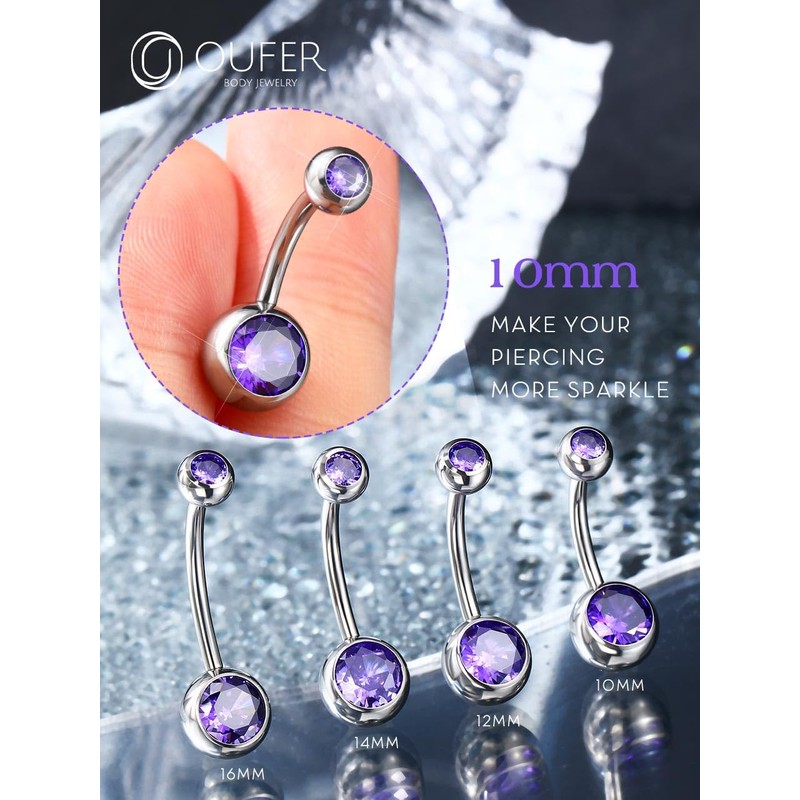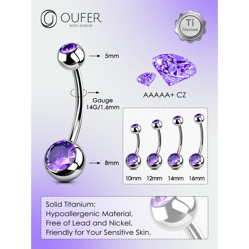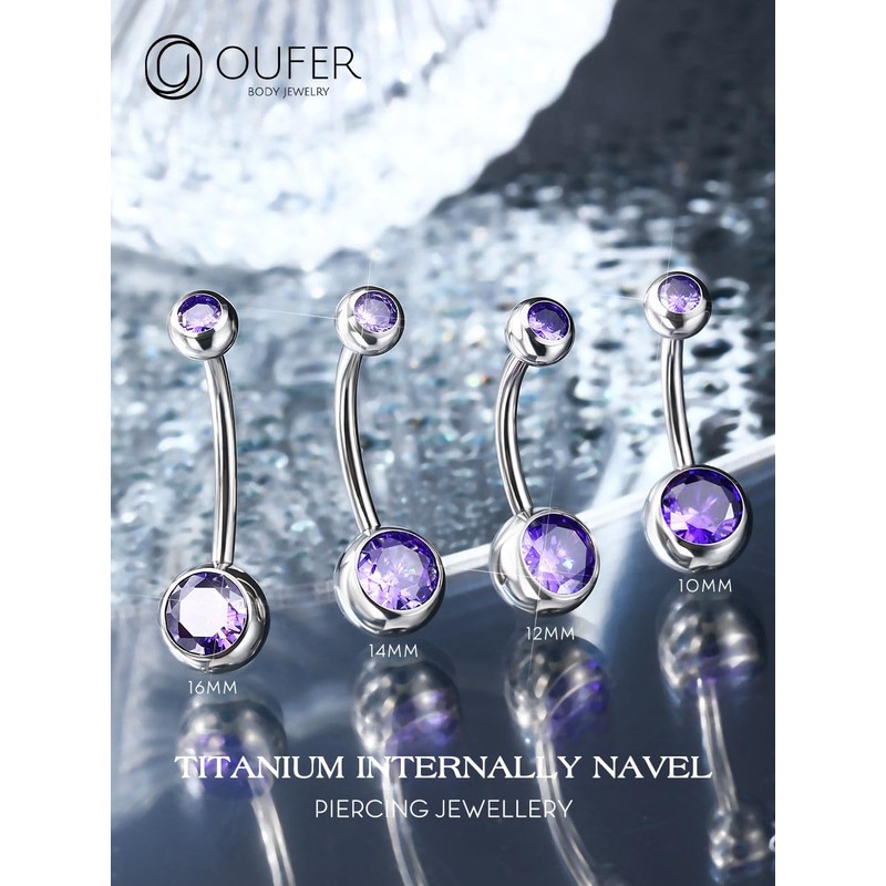 OUFER Body Piercing Internally Titanium Navel Piercing 10/12/14/16 mm Navel Bars Piercing 14G Belly Bars Ring Piercing Jewellery, Titanium