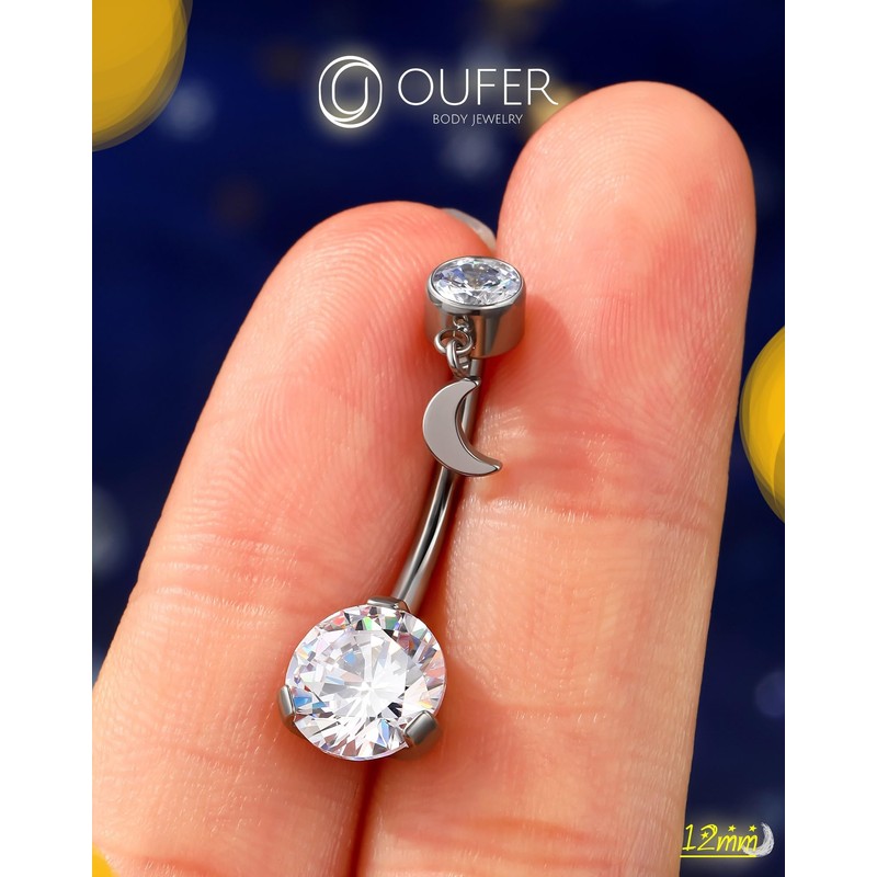 - Style of navel piercing: you will receive 1pc 14G/1.6mm titanium belly button piercing with clear round CZ and moon dangle