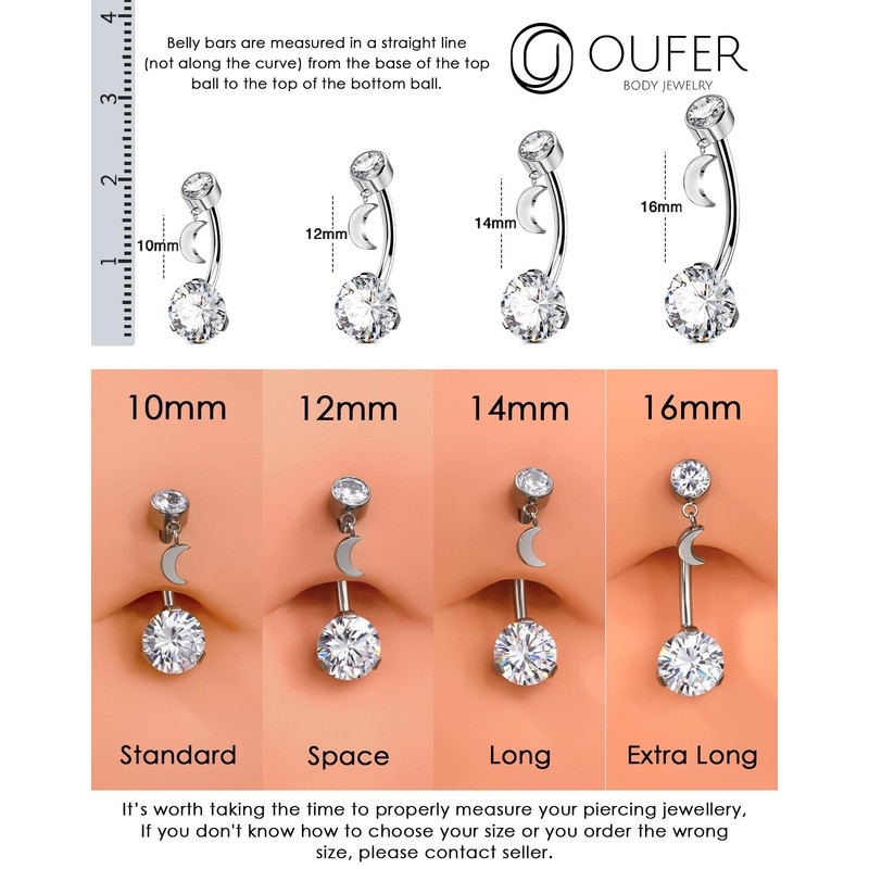 OUFER Body Piercing Threadless Titanium Belly Button Bars 14G Navel Piercing Jewellery 10/12/14/16 mm Push in Navel Piercing Bars Moon Belly Button Ring, Titanium
