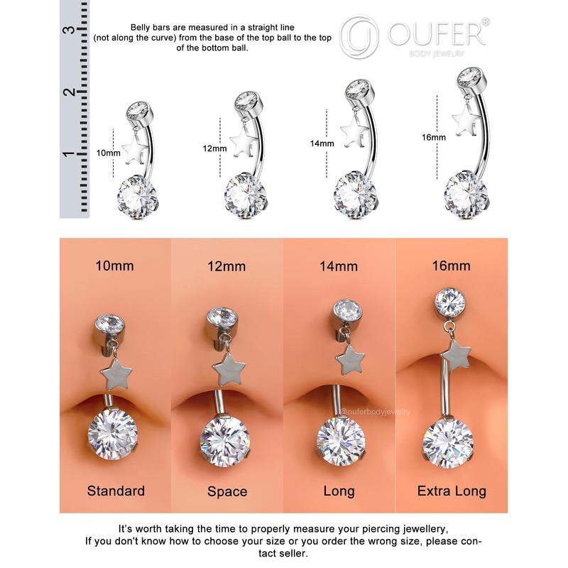 OUFER Body Piercing Titanium Belly Button Piercing 10/12/14/16 mm Threadless ...