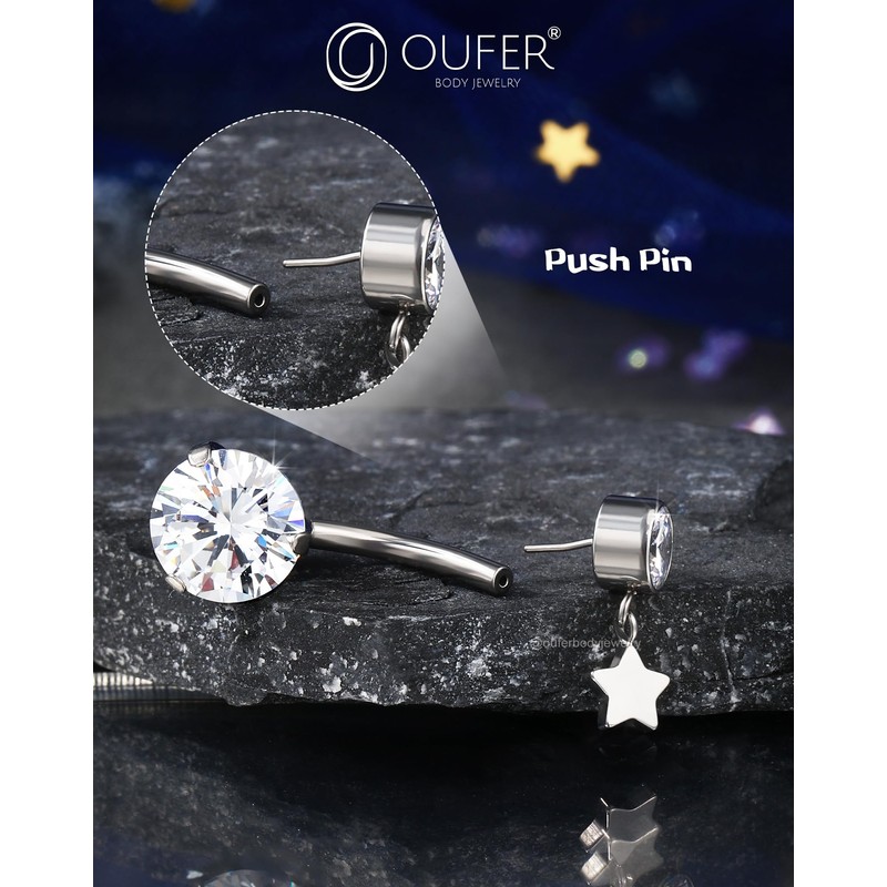 • Design of titanium threadless navel piercing jewellery: push in design, easy to wear, clear CZ make the belly piercing more sparkling, star dangle make the belly button ring more fashionable