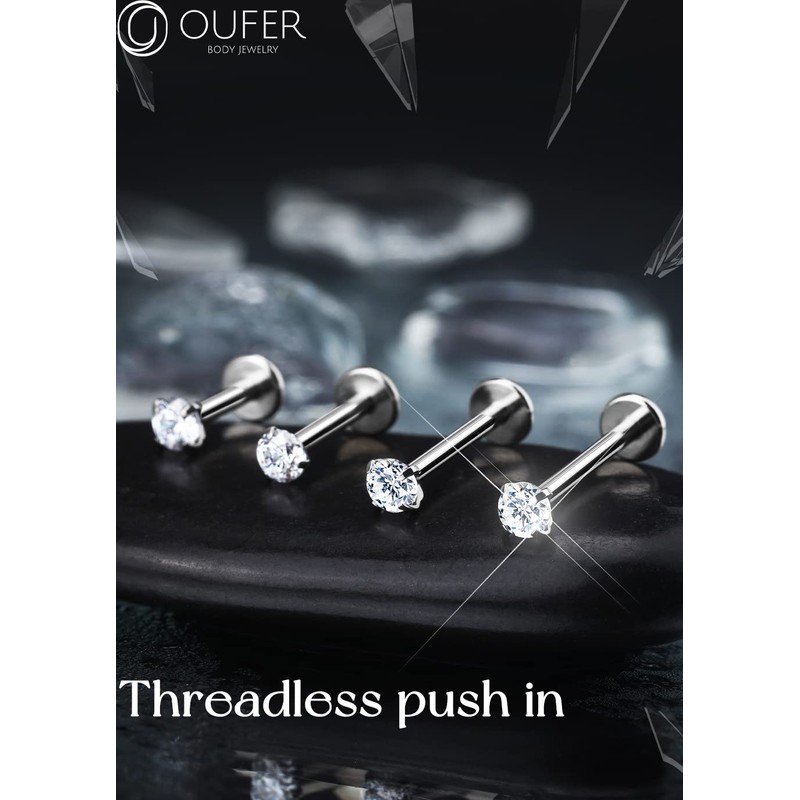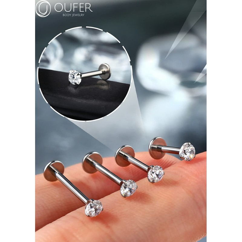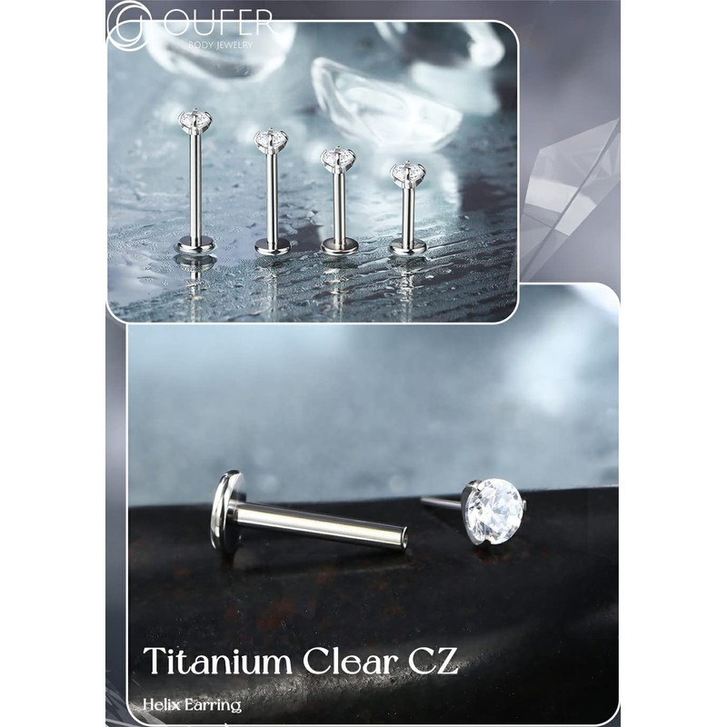 OUFER Body Piercing Titanium Lip Piercing 6mm 8mm 10mm 12mm Helix Tragus Earring 16g Cubic Zirconia Tragus Helix Conch Lip Piercing Case Steel Titanium, Titanium