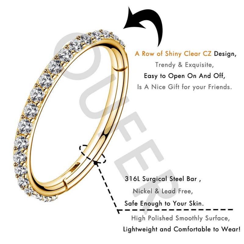 - ❤SHINY STYLE❤:1PC gold plated with shiny clear CZ paved hinged segment cartilage earring hoop ,more than 11 clear CZ paved,makes it more shiny and charming on your ear or nose .