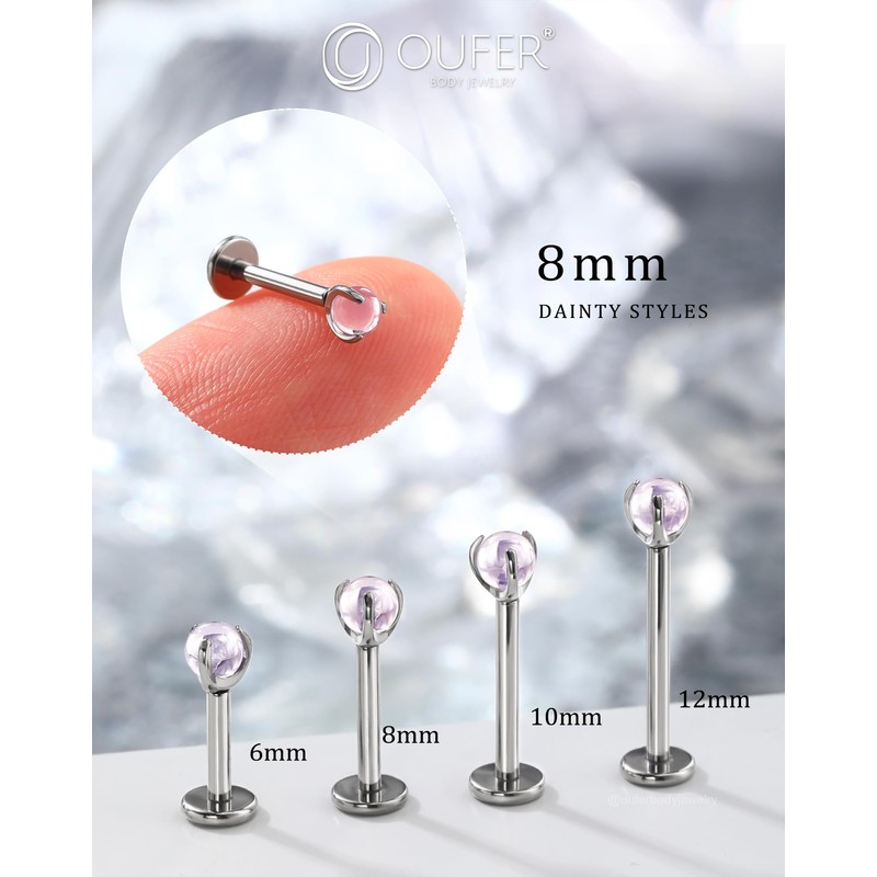 - The gauge of the labret piercing stud is 16G/1.2mm, bar length has 6/8/10/12mm, please choose the suitable length carefully, top stone size is 3mm
