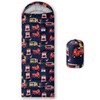 - 【Fashion Design】: This cartoon car for boy adopts 3D digital printing technology, with bright colors, suitable for room decoration. This sleeping bag features an adjustable drawstring design that allows for free adjustment of tension, making it easy to store. The zipper design of the sleeping bag makes it look like a blanket when opened. It can be used as a picnic mat and has a wide range of functions.