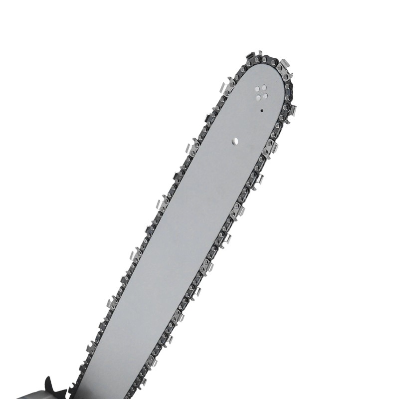 High Safety: It has a dual protection switch that needs to be pressed at the same time to activate, which prevents the machine from starting accidentally for added safety in use. Moreover, the thicker and wider baffle allows for emergency braking and prevents wood chips from splashing, or accidentally touching the chain, increasing safety in use.