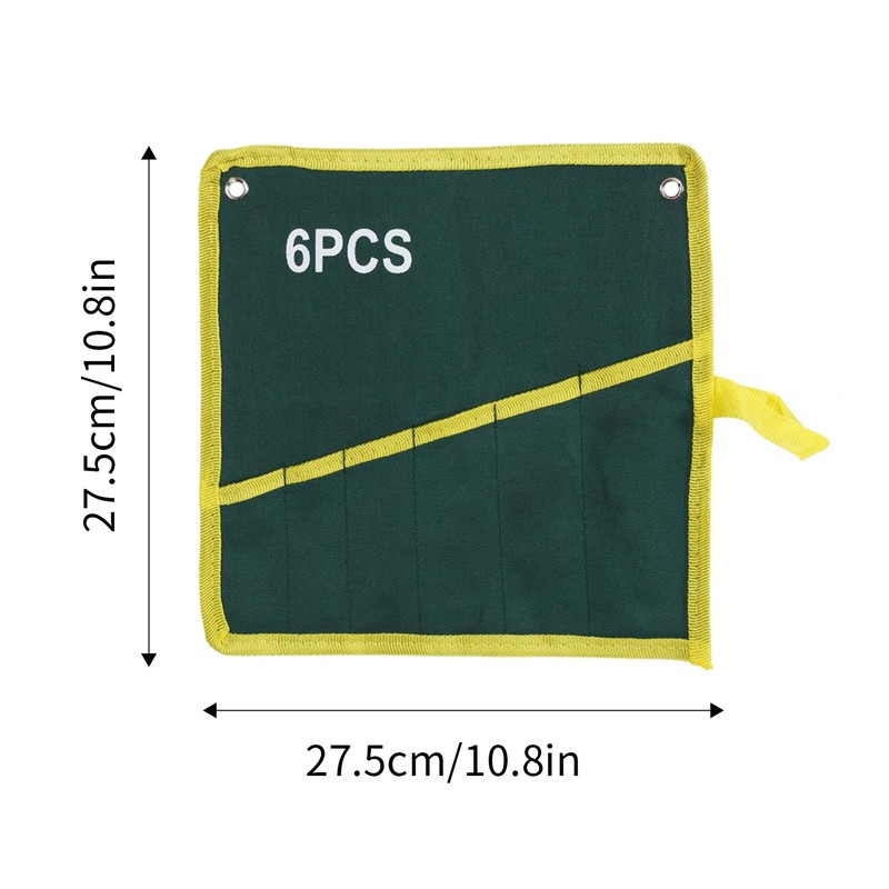 OUKENS Tool Hanging Bag, 1 Pc Durable Canvas 6/8/10/12/14/25 Pockets, Wrench, Wrench Tool, Roll Up Storage Bag, Green (6 Pieces)