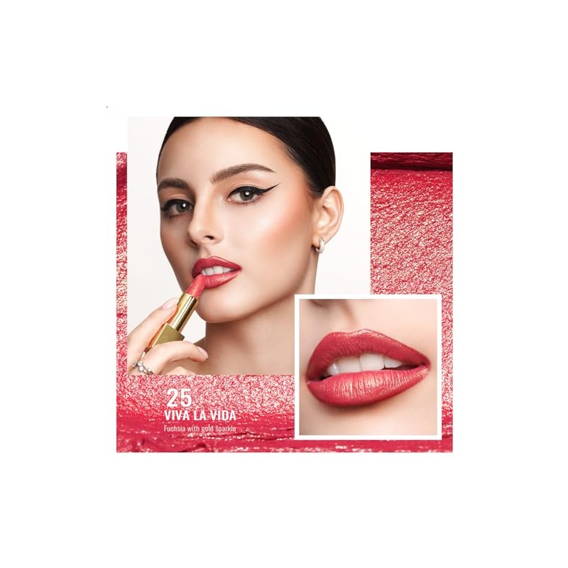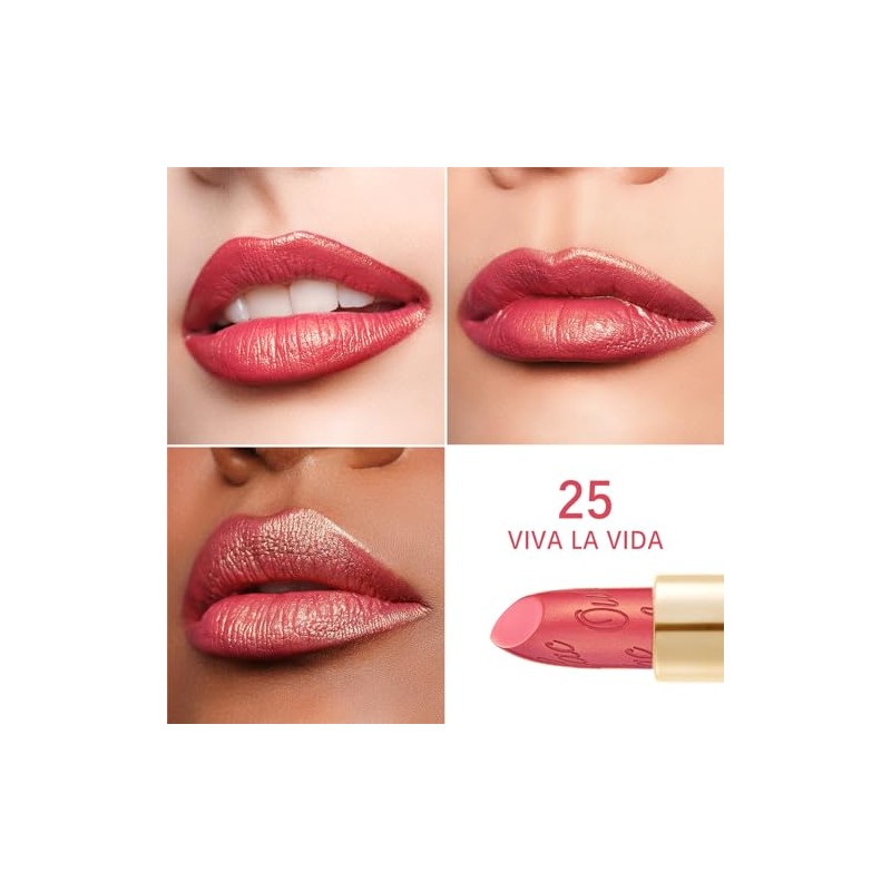 OULAC Lippenstift Metallic Glanz Finish, Fuchsie Glitzer Lippenstift mit Lang Anhaltendem 3D-Glanz, Intensive Farbe, Cremige und Feuchthaltende Formel, Vegan, 4.3g, (25) Viva La Vida