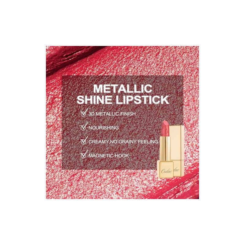 - Magnetisches Etui: Dieser metallisch glänzende Lippenstift wird in einem magnetischen Etui geliefert, um zu verhindern, dass das Etui durch den Gebrauch beschädigt wird. Außerdem wird Ihre Handtasche nicht mehr fleckig. Die vergoldete Erscheinung des ganzen Körpers zeigt dein edles Temperament