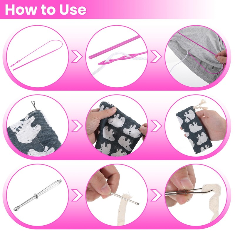 - Value package: you will receive 2 pieces plastic drawstring threader (pink), 1 x metal drawstring threading aid, 1 x metal drawstring needle threader tweezers, 2 metal loop hooks and 2 metal tweezers, which are sufficient for your sewing needs