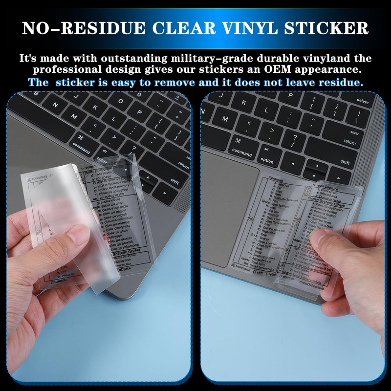 - Size compatibility: these shortcut stickers are exclusively designed for 13-16 inch MacBook Air and Pro models and compatible with Mac operating systems such as Sonoma, Ventura, Monterey, Big Sur, Catalina and Mojave. Not suitable for MacBook models smaller than 13 inches