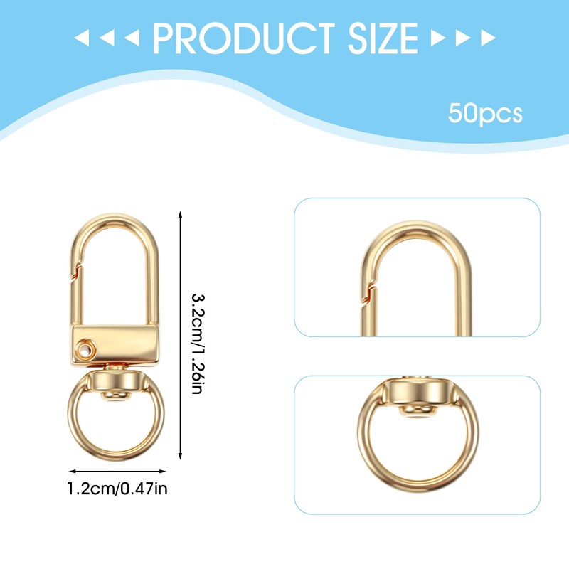 - Package content: the set contains 50 pieces carabiner hooks small rotating in elegant golden colour. These mini swivel carabiners are made of high-quality zinc alloy, which prevents rust and oxidation and is known for their robustness