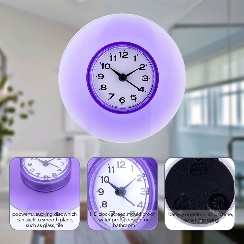 Oumefar Mini Wall Clock Waterproof Clock with Large Suction Cup for Show Time Bathroom (Purple