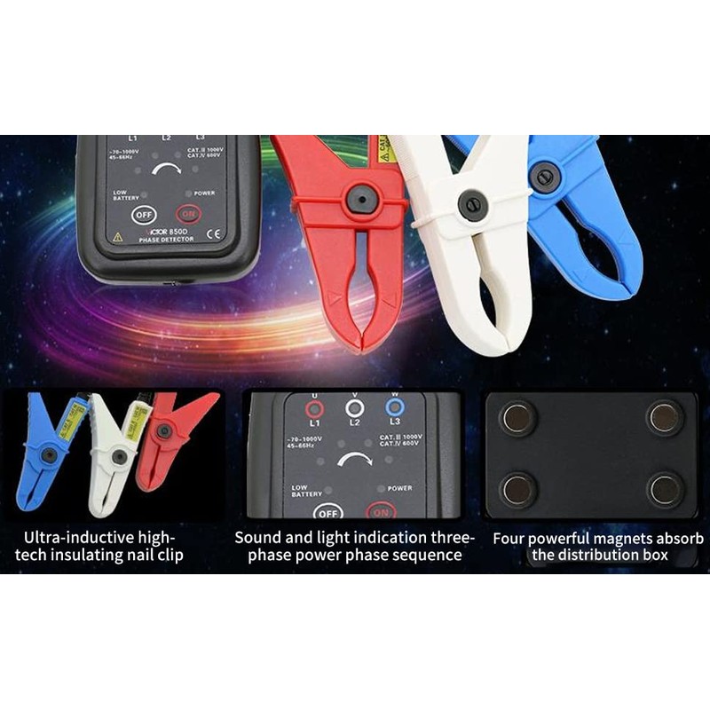 - ✿Durable material: The bottom plate of the instrument is equipped with 4 magnets, which can be attached to the metal casing of the equipment during testing, and the Phase Detector operation is convenient and convenient.