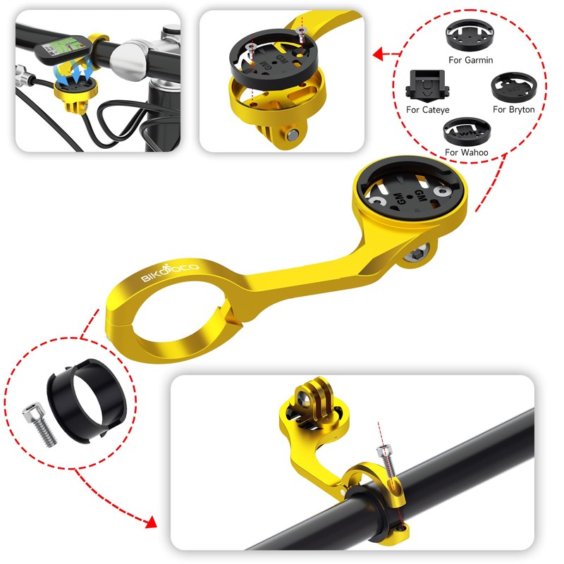 - Wide Compatibility: BIKOOCO out-front bike mount is compatible with Garmin Wahoo Bryton Cateye GPS Computers, interface sports action camera, and headlight/flashlight. Suitable for most bikes.