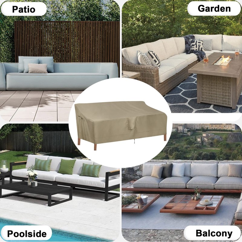 - UV-Proof And Waterproof Coating & Durable Oxford Fabric Outdoor Couch Cover: Made of premium 420D oxford fabric, our patio sofa cover is lasting for use. With UV-resistant and waterproof coating, this patio couch cover can be used for any season to use. It wholly shields your outdoor patio sofa from UV rays and terrible weather including heavy rain, big snow, strong sunlight and so on.
