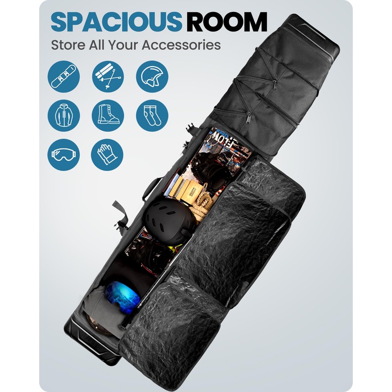 - Convenient Storage - This OutdoorMaster ski & snowboard travel bags are equipped with multiple compartments for wet and dry separation, providing easily storage for your gloves, snow goggles, boots, ski poles, helmet, or other accessories.