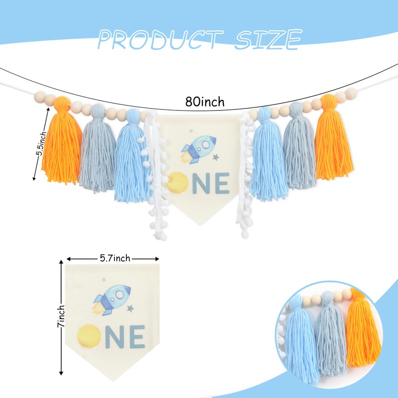 Outer Space High Chair Tassels Banner,Planets Astronaut Rocket 1st Birthday Decorations,Space First High Chair One Banner Party Decor,First Trip Around Sun