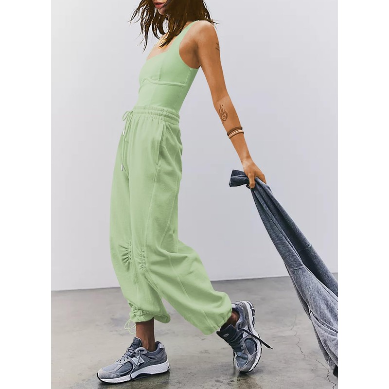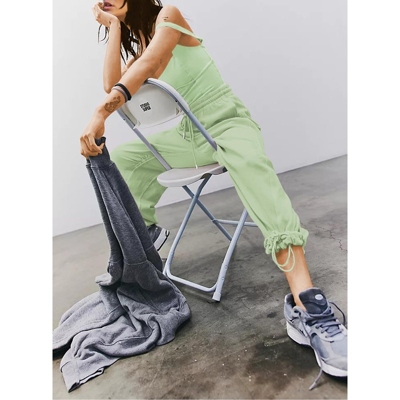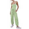 Outfeel Women's Sleeveless Summer Jumpsuit Square Neck Drawstring Waist Long Romper Jumpers 2025 with Pockets Pistachio Green X-Large