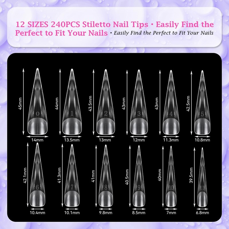 - Versatile and Convenient: Our Nail Tips Kit is the perfect solution for all your nail extension needs. These 240pcs nail tips with numbers are distinguished in 12 grids in different sizes, so you can easily find the perfect fit for your nails