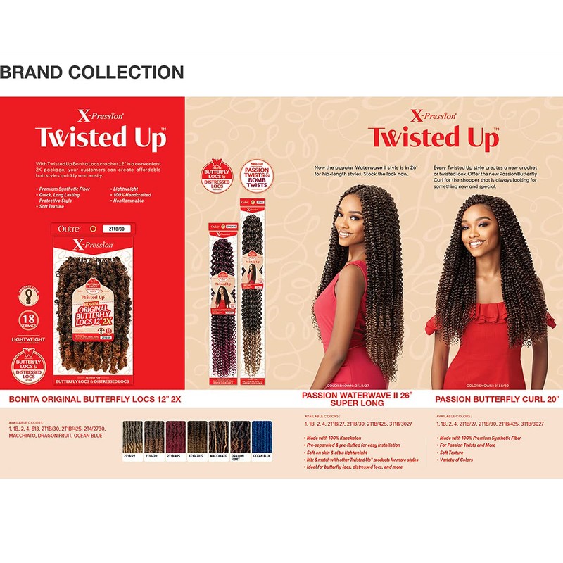 Outre X-Pression Twisted Up Long Length Yaki Curly Style Synthetic Hair Braid - PASSION BUTTERFLY CURL 20”