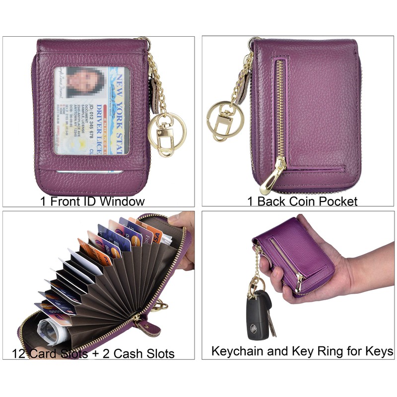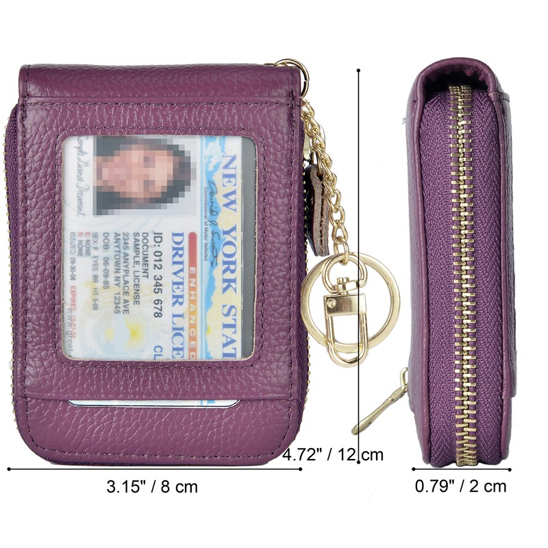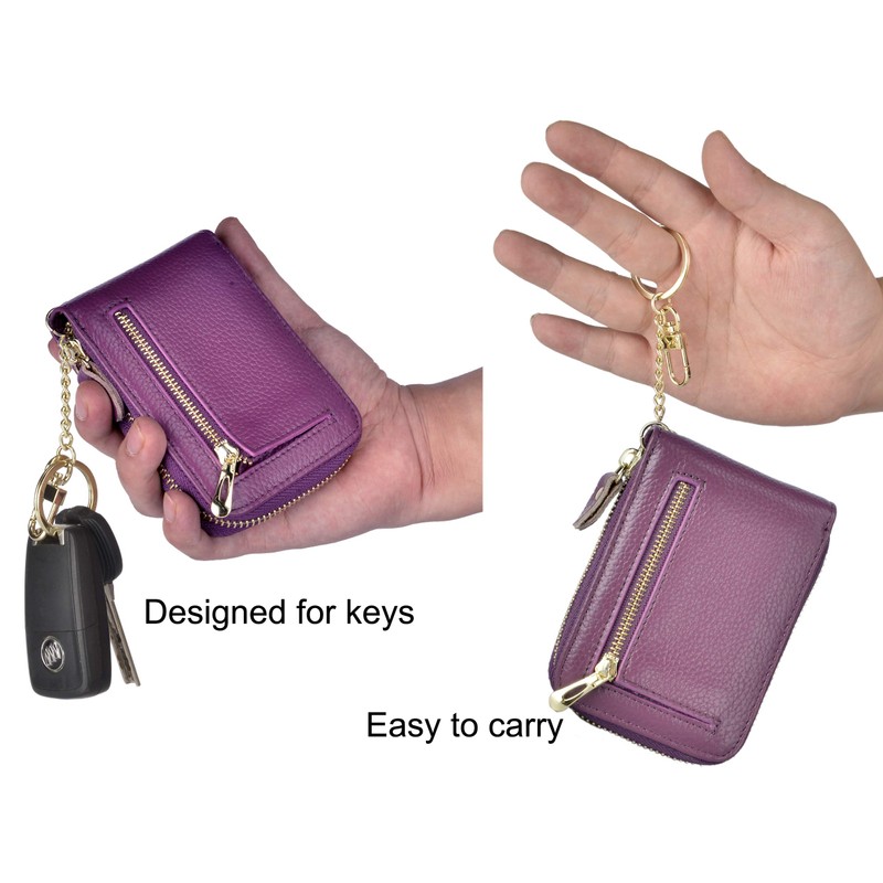 Outrip RFID Small Credit Card Holder Wallets for Women Zipper Coin Purse with Keychain, Purple, Small