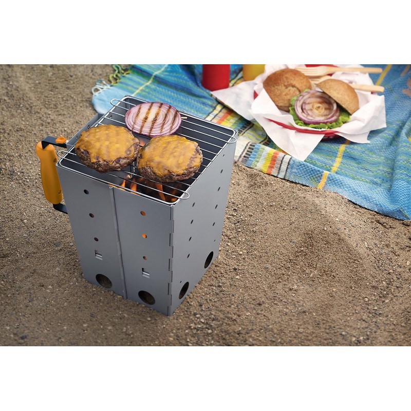 Outset 76356 Collapsible Camping Grill and Chimney Starter, Metallic, 1 ea