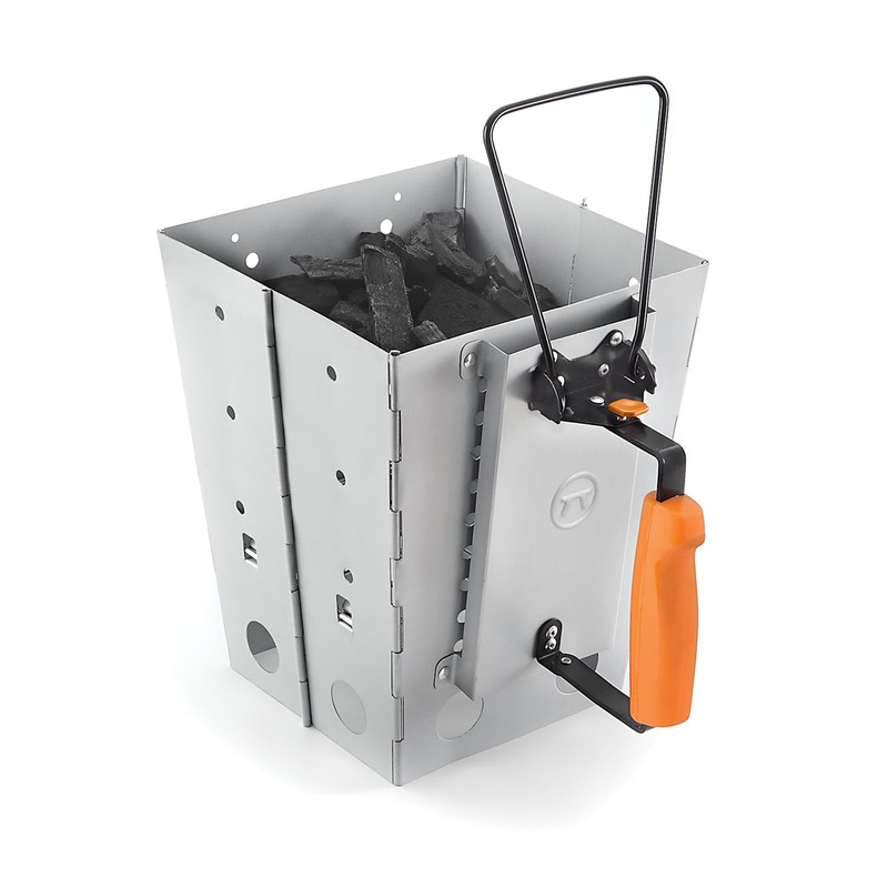 - SLEEK AND STURDY DESIGN: This collapsible camping grill and chimney starter is built with a zinc body, chromed grll grates, and nylon handle